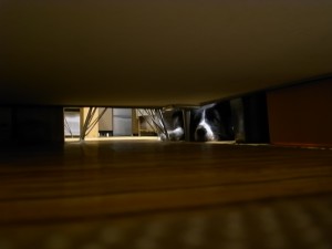 ソファーの下を見ながら
