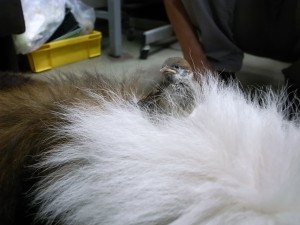 毛の中へもぐろうとしてました。